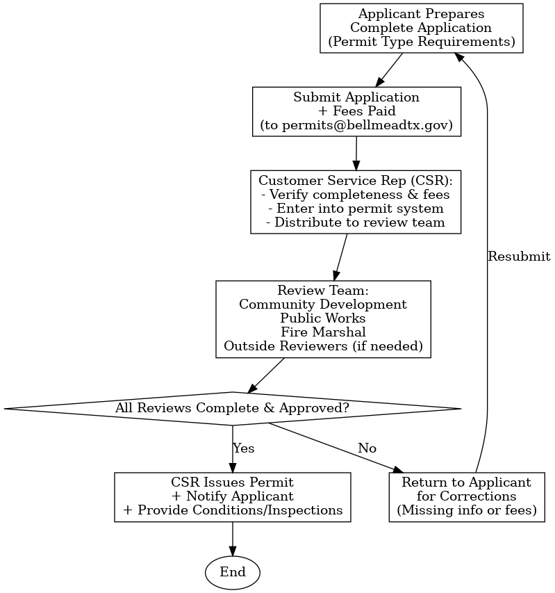 Some basic information to get you started on your Bellmead journey can be found in the sections that follow. Also, check out the GENERAL Building Permit Process Flow Chart link in the "Related Documents" to the right. This will help explain what's needed to get your projects underway.